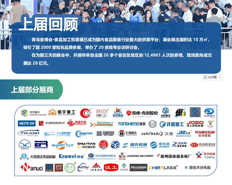 2026青岛国际食物机械博览会,不只是全球食物包拆取加工手艺的“阅场”,更是鞭策行业智能化、绿色化、全球化成长的环节平台!青岛食物机械展 #食物包拆设备 #智能工场 #绿色包拆 #2026青岛蓝博食博会前往搜狐,查看更多。